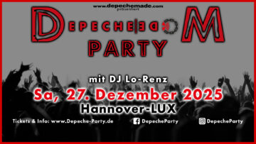 Tradionell nach Weihnachten legt DJ Lo-Renz ** Depeche Mode – aber auch vieles „Passendes“ auf. Ein munteres Programm von Nostalgie bishin zu aktuellem (manchmal auch dürsterem) Indie. Songs die man aus dem Radio kennt, aber auch welche die man nur auf Cassette hatte. Es geht LOs in den 80ern und dann zurück in die Zukunft, wo es gegen ende auch mal electronisch etwas härter werden könnte. Insgesamt ein sportlich-tanzfreudiger Abend, getreu dem Motto: Depeche-Party (Schnelle Party).