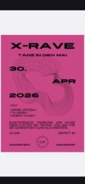 X-RAVE = elektronische Tanzmusik aus diversen Spielarten von House bis Techno für die Generation X und alle anderen, zum Auftakt mit DANIEL ORTEGA, TILLMANN & ROBERT KLUGE an den Turntables……Rave in den Mai !!!